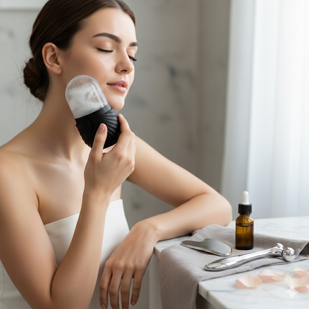 ✔️ Redukuje opuchliznę i cienie pod oczami – masaż chłodzącym rollerem lub kostką lodu poprawia krążenie krwi i limfy.