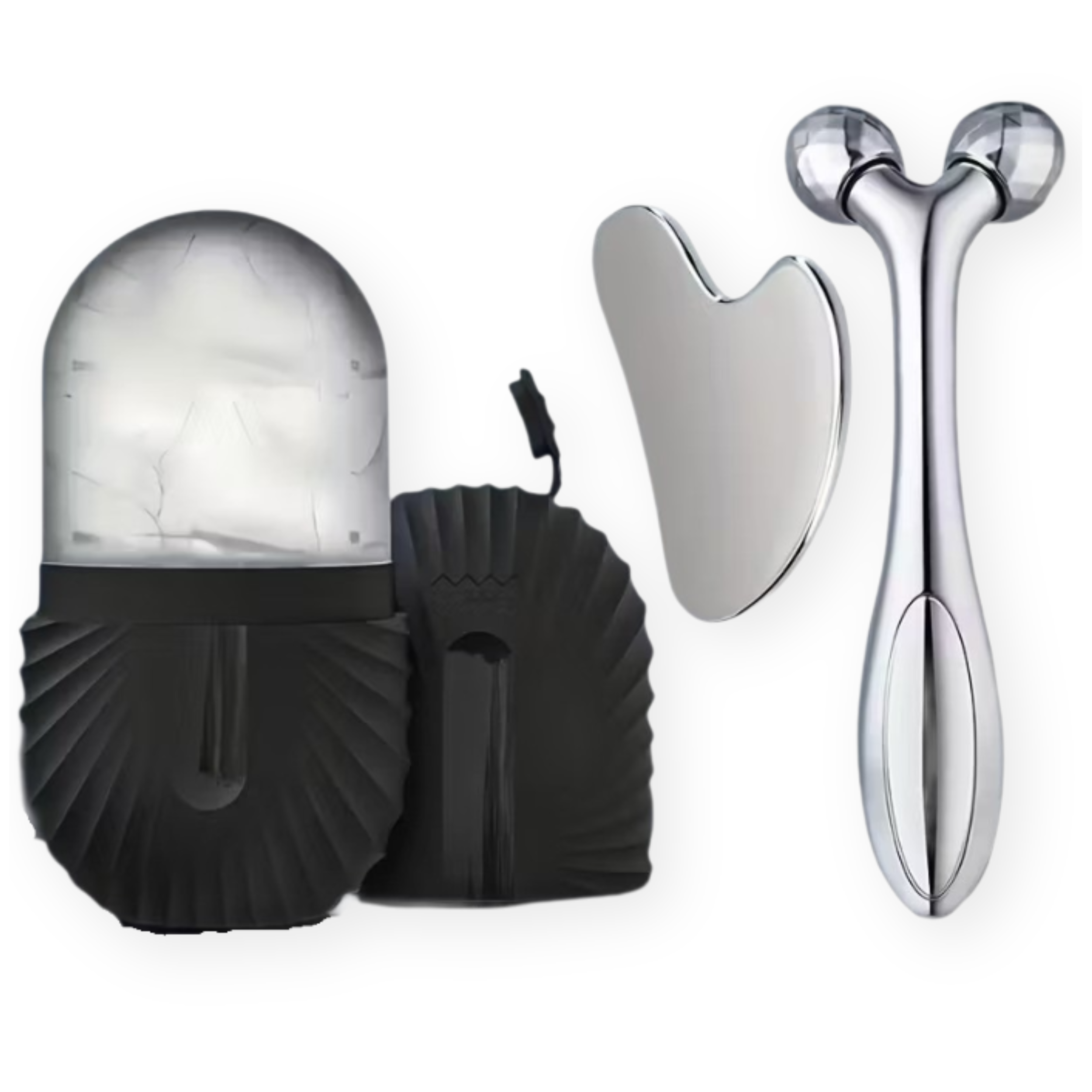 Zestaw 3 masażerów do twarzy lodowy roller stalowy gua sha rolka 3D