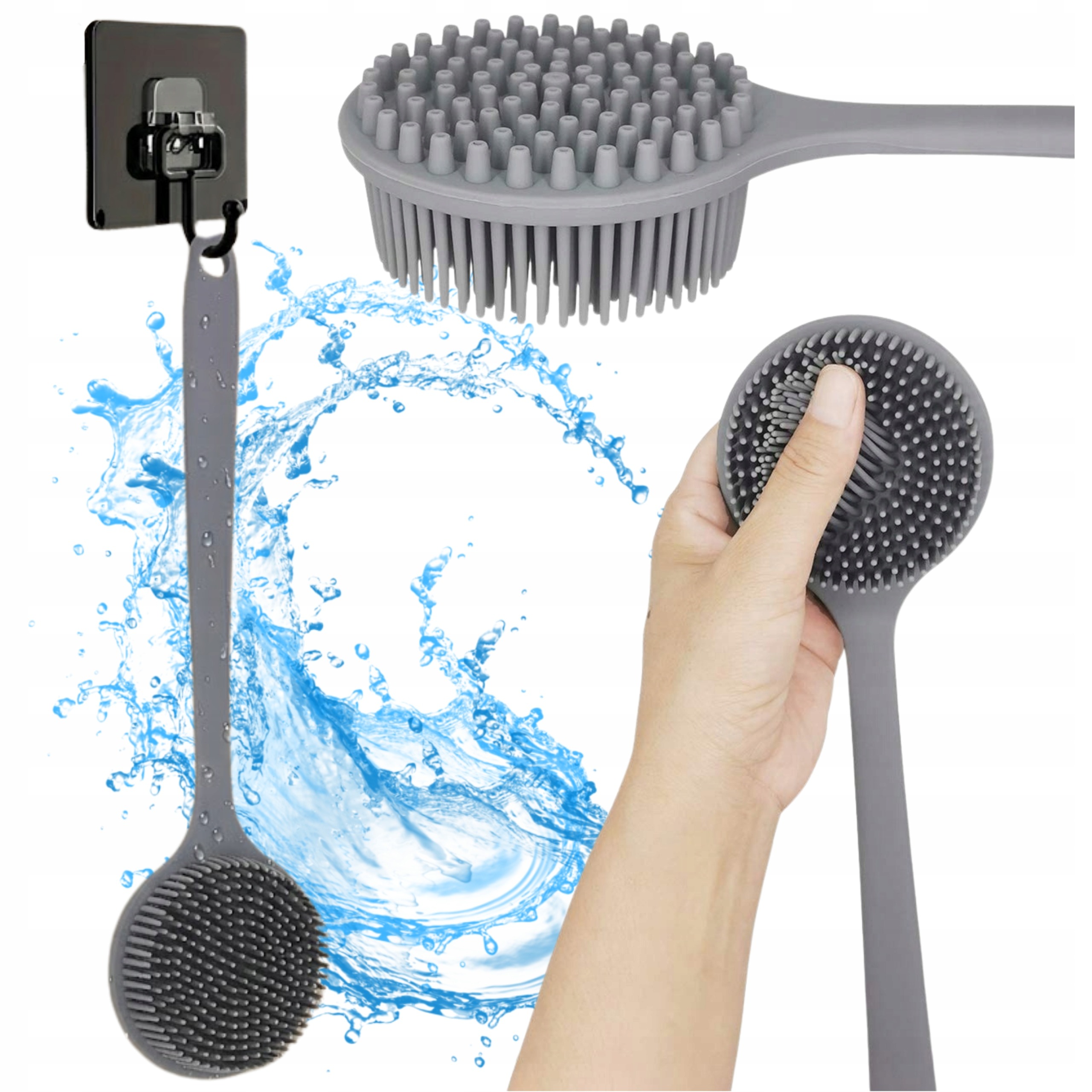 Silikonowa Szczotka do Ciała z Długą Rączką – Hipoalergiczne Oczyszczanie i Masaż Skóry + haczyk samoprzylepny gratis!