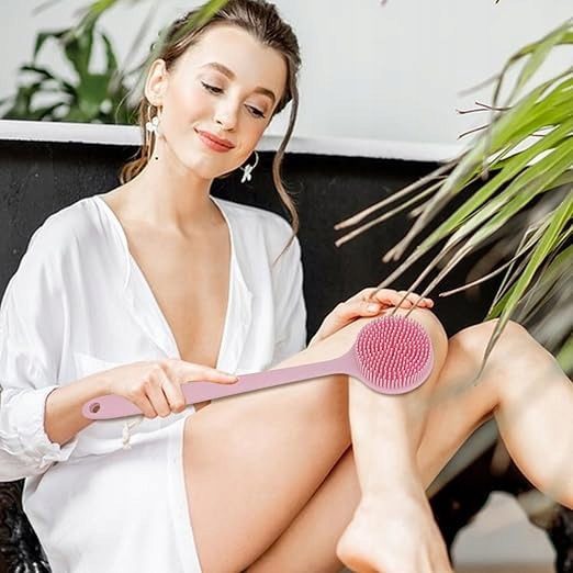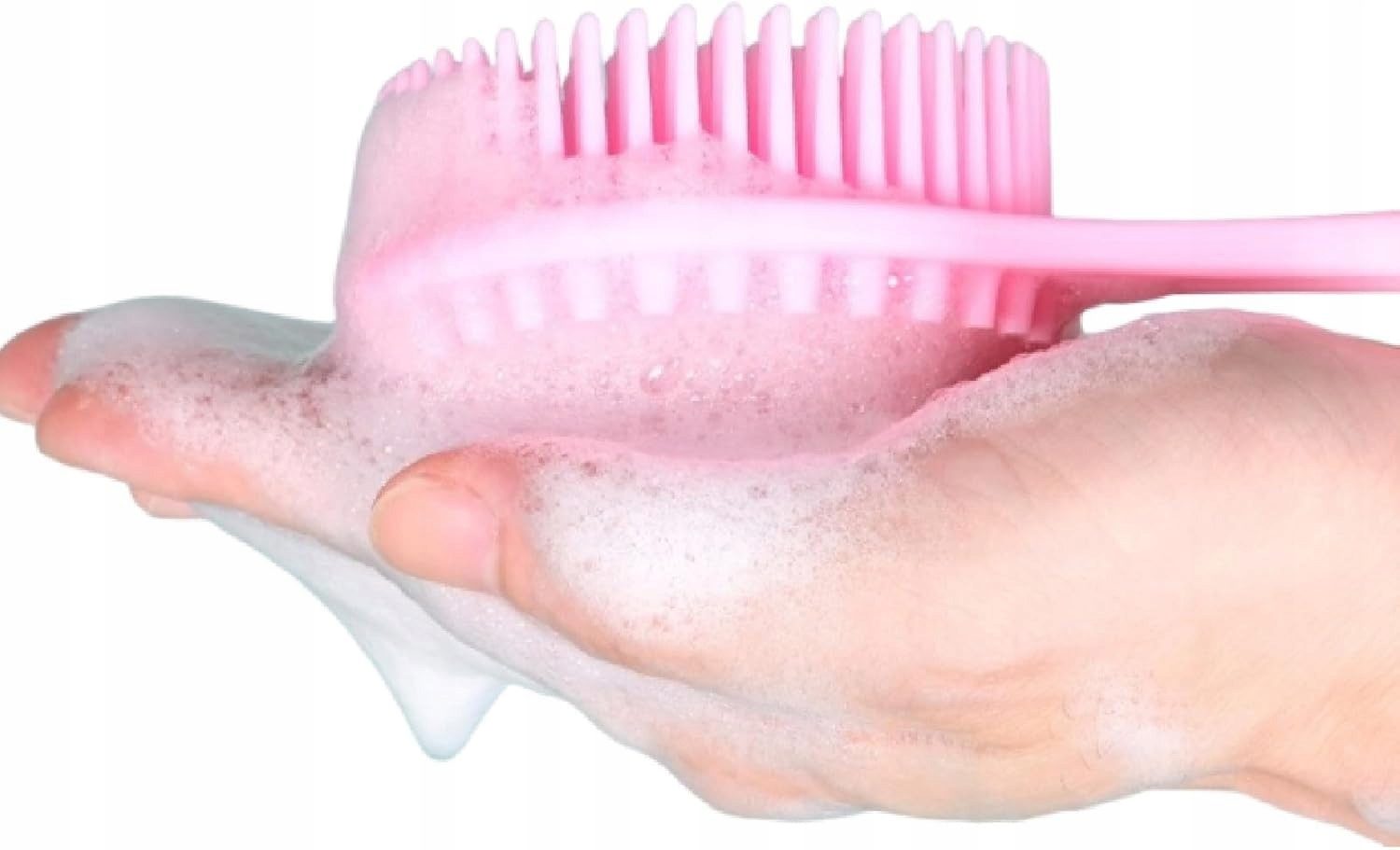 ✔️ Szczoteczkę silikonową na długim trzonku do pleców – ułatwia dokładne mycie pleców i trudno dostępnych miejsc.