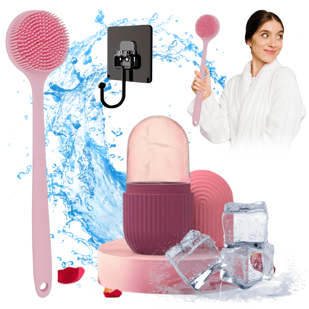 Zestaw silikonowy do ciała i twarzy z masażerem lodowym + haczyk – Pielęgnacja i świeżość na co dzień