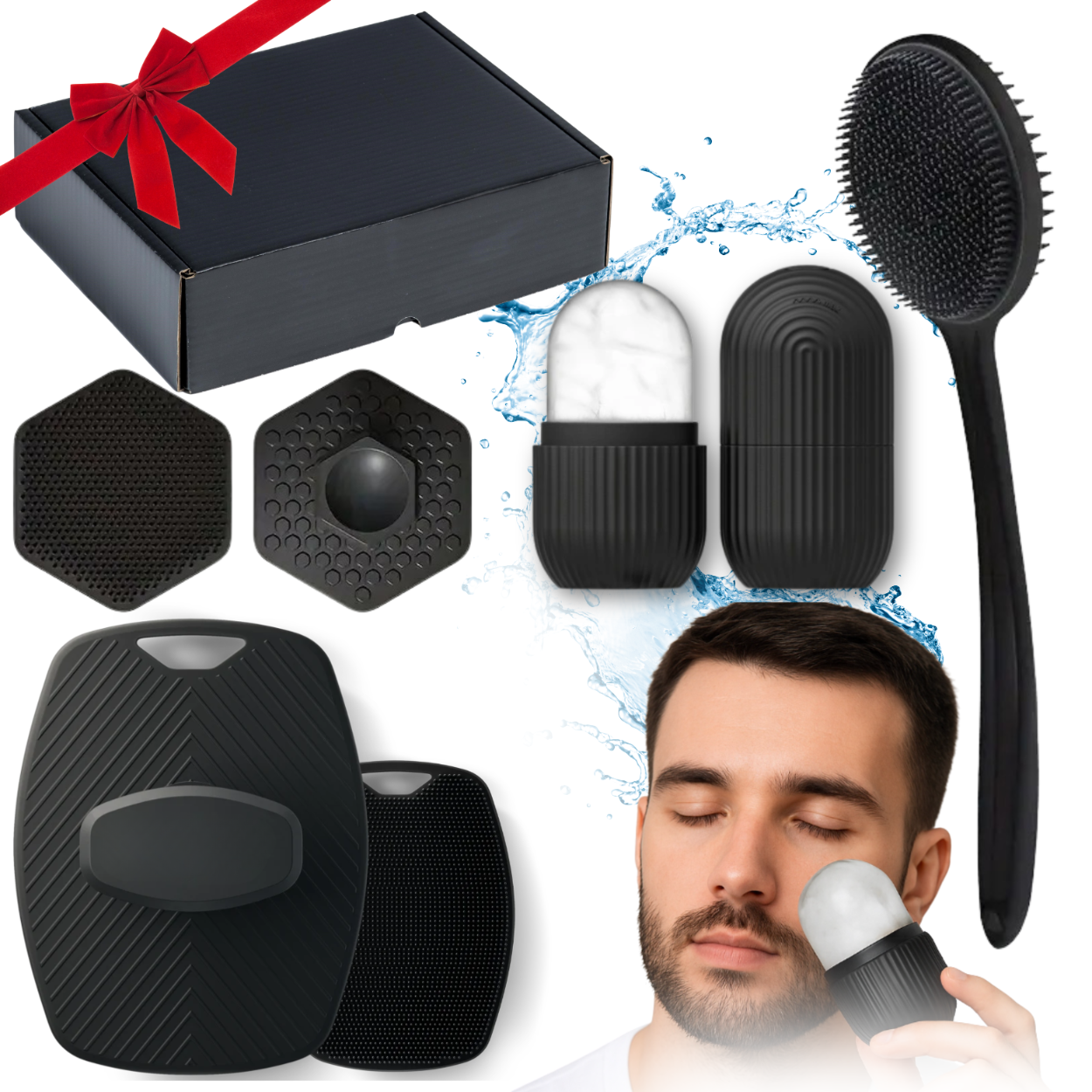 Świąteczny zestaw CZARNY dla mężczyzny – myjka do ciała i twarzy + szczotka do pleców + mini Ice Roller