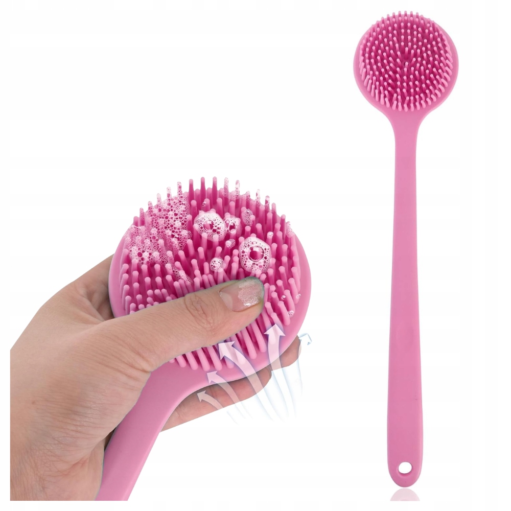 ▶️ 1 × różowa silikonowa szczotka z długą rączką